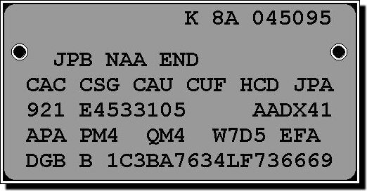 Saratoga: Graphic from equipment plate in engine compartment