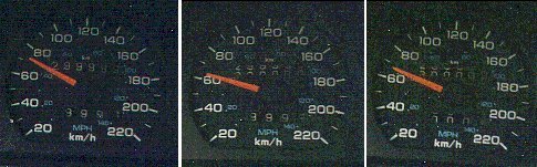 Andersherum ist die Karosse fast völlig rostfrei. Nur der Kofferraumdeckel hat an seiner Unterseite ein paar abbröckelnde Kanten, wo Bleche doppelt liegen und nicht sorgfältig abgedichtet sind. Der Motor läuft wie eine Eins, lediglich, wenn der Ölpegel gegen Minimum sinkt, brauchen die Hydrostößel ein paar Minuten, um ruhig ohne klappern zu funktionieren. Einfach einen halben Liter Öl auffüllen und schon ist wieder alles in Butter. Der Ölverbrauch beträgt nach wie vor etwa einen halben bis dreiviertel Liter auf 1.000 Kilometer. Obwohl das ganze Fahrwerk, Aufhängungen, Stoßdämpfer und Lager schon so derartig abgelaufen sind, ist man immer noch in der Lage die Hände vom Lenkrad zu nehmen wenn man 160 km/h fährt, ohne unversehens die Straße zu verlassen. Der Wagen fährt ruhig weiter und läuft unbeirrbar geradeaus. Wie gut zeigt dieses Foto: aufgenommen auf der Autobahn A7 an einem Montag morgen - wobei ich freihändig fahren mußte, weil die blöde Kamera so schwer war. Achtet auf Tacho und Kilometerzähler und dann zeigt mir mal einen anderen Wagen, der das nach mehr als 290.000 Kilometern noch schafft - oder mit dem man sich sowas trauen kann.