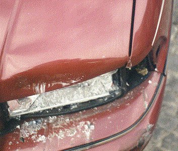 Fahre auf der Autobahn nach Hause. Dichter Verkehr mit niedriger Geschwindigkeit. Vielleicht ein Unfall auf der Gegenfahrbahn, viele Leute, die noch langsamer werden, um besser gucken zu können. Ein Wagen links von mir schert plötzlich aus und zieht auf meine Fahrspur. Muß hart bremsen, um einen Zusammenprall zu vermeiden. Möglicherweise etwas zu schnell für den Kerl im blauen Audi A4 hinter mir, der auch geguckt hat. Kriegte seine Strafe. Ihr kennt das schon: KRACH - und das Geräusch fallender Glassplitter ! Nicht viel dazu zu sagen. Jemand rief die Polizei über Mobiltelefon und die brauchten fünfzehn Minuten um aufzukreuzen. Erste Frage "Wo ist der Unfallgegner ?" Nachher haben sie behauptet, ich würde einen getarnten Panzer fahren, was ich verneint habe. Konnte ganz normal nach hause fahren.